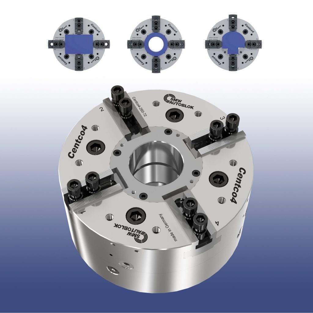 SMW Autoblok introduces the versatile four-in-one Centco4 2+2 self-centering and compensating chuck. The Centco4's engineering and flexibility enables it to securely and efficiently clamp virtually any type or shape of geometric part including round, cubic, angular and irregular.