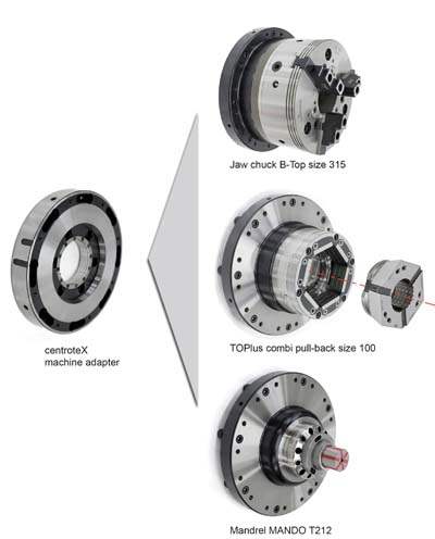 HAINBUCH America Inc. introduces their quick-change workholding interface system for turning centers. The patented centroteX System allows change-over of any workholding device on a turning center within five minutes or less while maintaining accuracies, eliminating the need for an operator to indicate the workholding system during change-overs and dramatically decreases machine downtime.