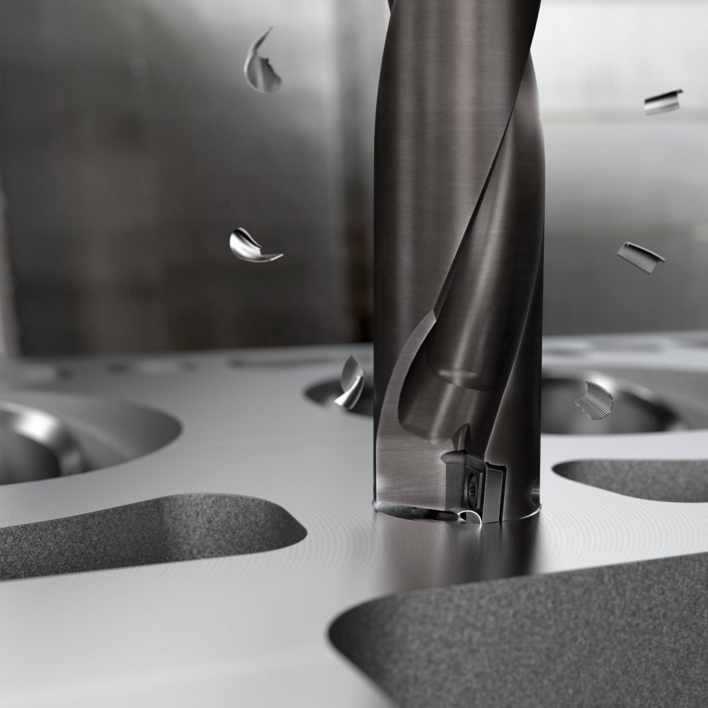 "Making holes in aluminum can be a challenging task," explains Patrik Pichler, global product manager, indexable drilling tools at Sandvik Coromant. "Ductility and softness cause the material to make constant and prolonged contact with the insert's cutting edges. As a consequence, the aluminum adheres to the cutting edge and creates a built-up edge (BUE) that makes chip formation and evacuation difficult."