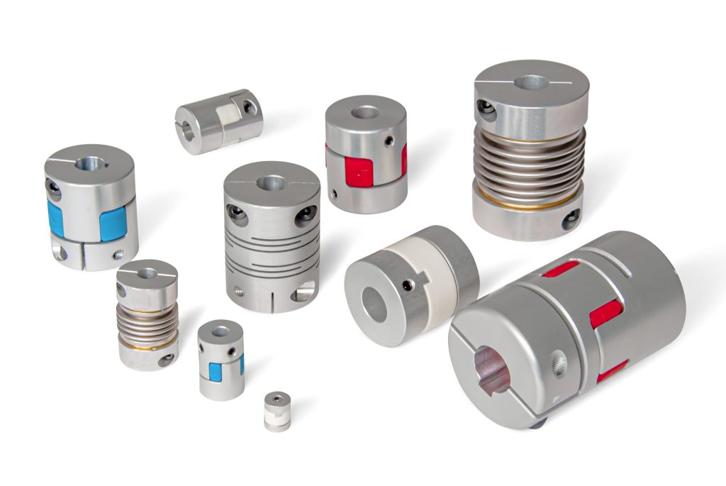 The recently added couplings of aluminum and stainless steel include designs for positive and non-positive connections. Multiple bore diameters, various, stiffness and hardness levels of the coupling body as well as an optional keyway allow very specific customization to the given use case. In general, all couplings compensate for offsets and misalignments, accommodate runout error and axial motion, and dampen vibrations and impacts to varying degrees.