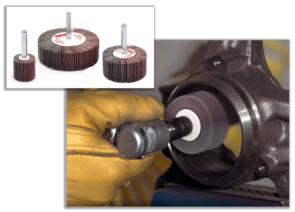 Superior Abrasives, LLC now offers custom flap wheels to suit specific application requirements. Customers desiring a specific material, grit pattern, flexibility of flap wheels, mounting options, and more can obtain precisely what they need. This customization allows manufacturers to match abrasives to their application requirements to more efficiently process the workpiece. Custom order available with industry-leading lead times. A fully stocked Application Engineering Lab and assistance to determine best methods and tools are available. Custom flap wheels from Superior Abrasives are ideal for contoured finishing and grinding, deburring and finishing of tube interiors, shaping or refining contours on cast or machined parts, weld seam blending or finishing, and more.