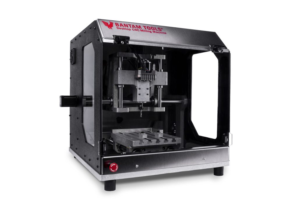 The Bantam Tools Desktop CNC Milling Machine is fast, easy to set up, and omes with software that allows for predictable outcomes, including automatic material location, effectively bringing aluminum prototyping to an accessible and affordable level that has not been seen in this category. Bantam Tools Milling Machine Software also supports a simple drag-and-drop integration with SVG files for 2.5D designs.n