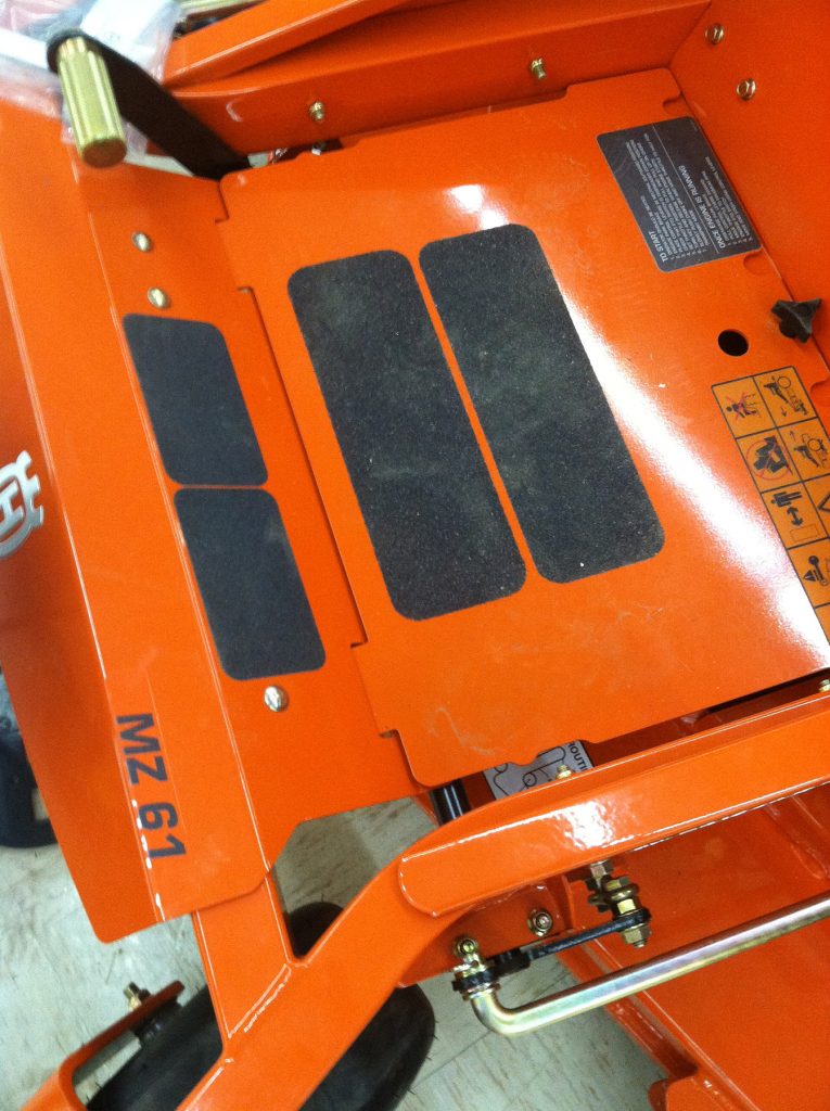 Applied FLEX-TRED is resistant to motor oil, detergent, hydraulic oil, and UV. It will tolerate steam and detergent cleaning and is essentially unaffected by climactic exposure and mild acid or alkali exposure under normal conditions. Die cut FLEX-TRED is ideal for application on gas/brake pedals, machinery deck plates, equipment steps and walkways, mowers, snow groomers, tow motors and forklifts, on platforms, scaffolds, cherry pickers, and ladders, and more.