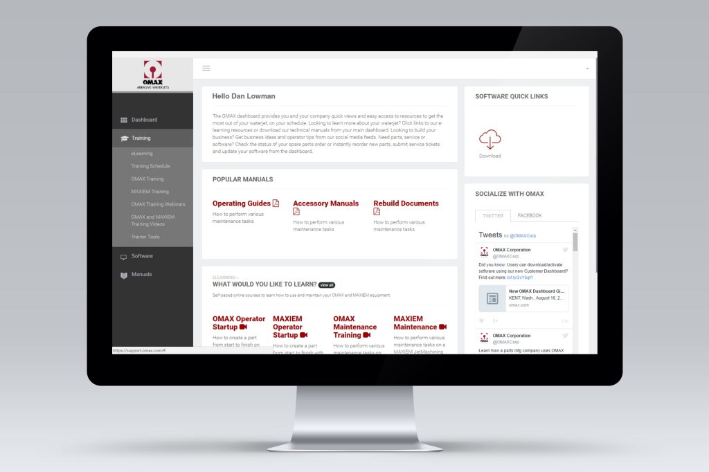 At the portal, an intuitive dashboard greets customers who can then easily access part order status, service cases, manuals, e-learning materials and account management tools. Unmatched in the industry, OMAX's E-learning resource provides convenience and flexibility for customers to obtain valuable employee training on a schedule and at a pace that works specifically for them.