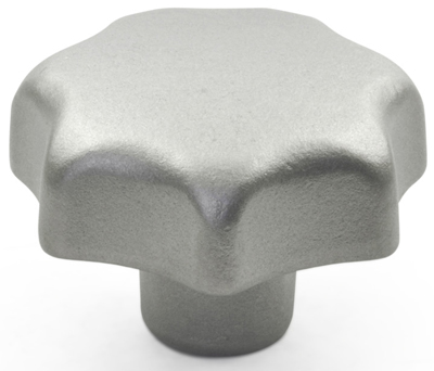 These RoHS-compliant hand knobs are made of cast stainless steel, European Standard 1.4308 (American Standard No. CF-8), with a matte, shot-blast finish. The knobs are available blank, with threaded blind bores, or with tapped through bores.