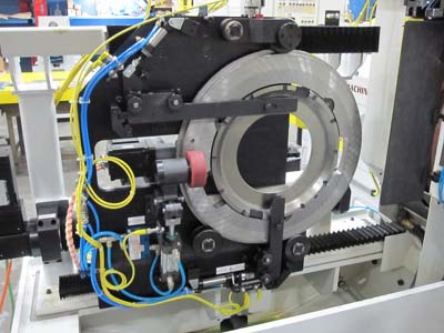 The grinding cell is designed to grind the faces of brake backing plates, up to 25" in diameter, for agricultural and off road equipment. This machine will be set up to grind ten different backing plate configurations and be flexible for any future program changes. The grinding cycle time for a finished part will be 180 seconds.