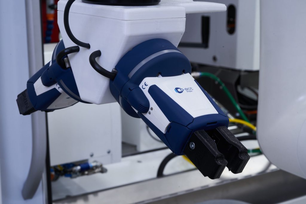 UNITED GRINDING North America has developed a new solution that simplifies the incorporation of dual gripper end-of-arm tooling on its entry-level versaLoad™ machine loader. This new I/O expansion eliminates the need for external cabling on the loader robot, streamlining dual gripper machine loading.