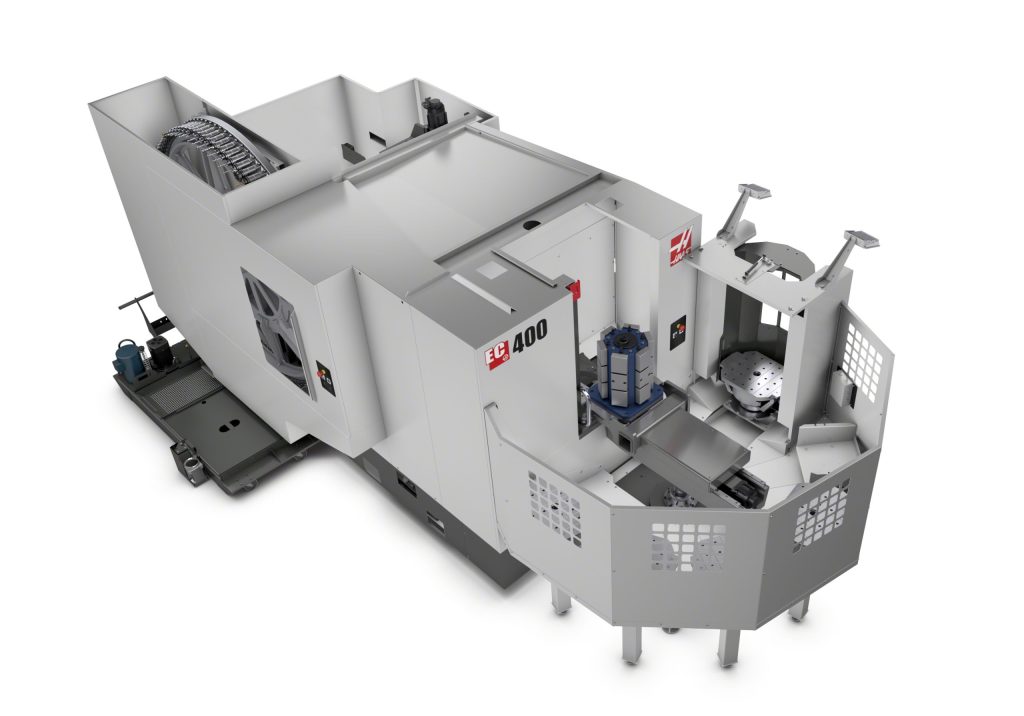 The new EC-400 horizontal toolchanger. See automatic toolchanger." title="CNC machine tool capable of drilling, reaming, tapping, milling and boring. Normally comes with an automatic toolchanger. See automatic toolchanger." aria-label="Glossary: machining center">machining center from Haas Automation Inc. is faster, more rigid, has a larger work cube and offers more tool capacity than its predecessor. When equipped with the available integrated, 6-station pallet pool and 100+1 side-mount toolchanger, the new EC-400 brings true "lights out" machining capability to small- and medium-sized manufacturers and production shops.