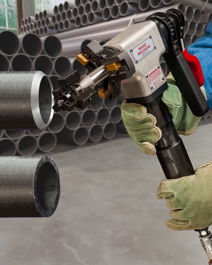 Suitable for tube and pipe from 0.750" ID to 4.5" OD, the Esco Wart MILLHOG runs at 98 rpm, which makes it suitable for highly alloyed materials or carbon steel. TiN-coated blades are offered in a wide range of styles and no cutting fluids are needed. Designed with reliable dual opposed taper roller bearings, it is available with pneumatic and electric motors.