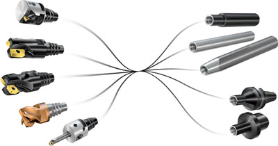 Sandvik Coromant's exchangeable-head (EH) system includes a wide assortment of solid carbide heads, indexable milling cutters, boring heads, integrated machine adaptors and different shanks.