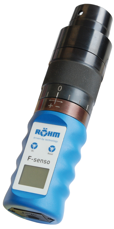 A new version of the F-senso spindle pull-in force measuring device from Röhm Products of America is engineered for use with clamping systems for smaller tool shanks including HSK A 25, A 32 and A 40 and steep taper SK [CAT/BT] 30. Initially introduced for shank sizes from HSK 50, HSK 125 or SK 40, SK 60, the F-senso device measures the pull-in force of machine tool clamping systems, making it possible to detect changes in force before they affect machining quality.