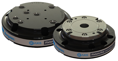 The new FixturePro adapter permits the easy mounting of FixturePro system vises, dovetail vises, collet holders and the Drop & Lock pallet changers for flexible multiaxis workholding options on popular rotary indexers and trunions. The complete FixturePro system includes additional components such as subplates, risers and adapters for any 5-axis or multiaxis machine. Additionally, FixturePro quick change capability allows for reduced set up time and the ability to keep components in their original clamping through multiple operations to ensure tolerance and repeatability.