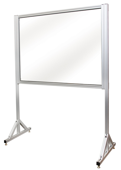 These assemblies are constructed of 1 ½"-square extruded aluminum with a 48" W x 36" H x ¼"-thick polycarbonate panel and include fasteners and a safety sign. The shield can be adjusted up or down on the posts. Custom sizes are available upon request.