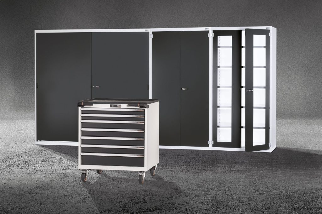 In addition, the new GARANT GridLine series swing and sliding door cabinets are available with both sheet steel and viewing window doors. The swing doors offer self-closing hinges and the sliding doors are self-locking, making them very high quality. LED internal lighting is an option as well; and can be used to either illuminate the entire cabinet interior or selected compartments. Customers will be able to quickly find the objects they want – even in darker surroundings.