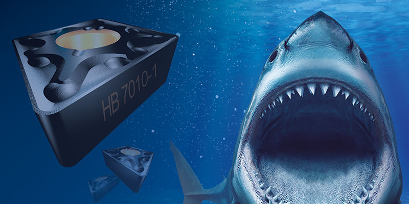 A shark's tooth was the inspiration for the Hoffmann Group when developing the GARANT HB70xx product family: a hard and extremely smooth exterior and a ductile interior. The GARANT HB 7010-1 has an extremely hard, wear-resistant and thermo-resistant CVD coating made of aluminum oxide (Al203) and titanium carbonitride Ti(C,N), which protects the carbide substrate, even at high cutting speeds and process temperatures. The carbide substrate is particularly resistant to plastic deformation, splintering and brittle fracturing as it is extremely ductile. This turning grade therefore reaches a significantly long tool life with continuous cutting and at high cutting speeds.