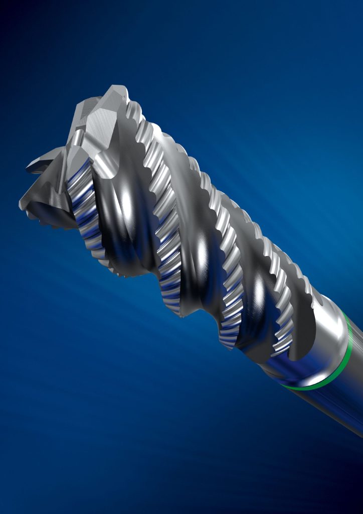 The GARANT MasterSteel SlotMachine permits plunge angles up to 10 degrees. The cutting edge design includes honing to minimize the risk of break-aways. The ultrafine grain substrate greatly increases the resistance to breakage; while the enhanced coating also optimizes the wear characteristics and reduces the rate of heat input. The unequal spacing ensures a smooth cutting action.