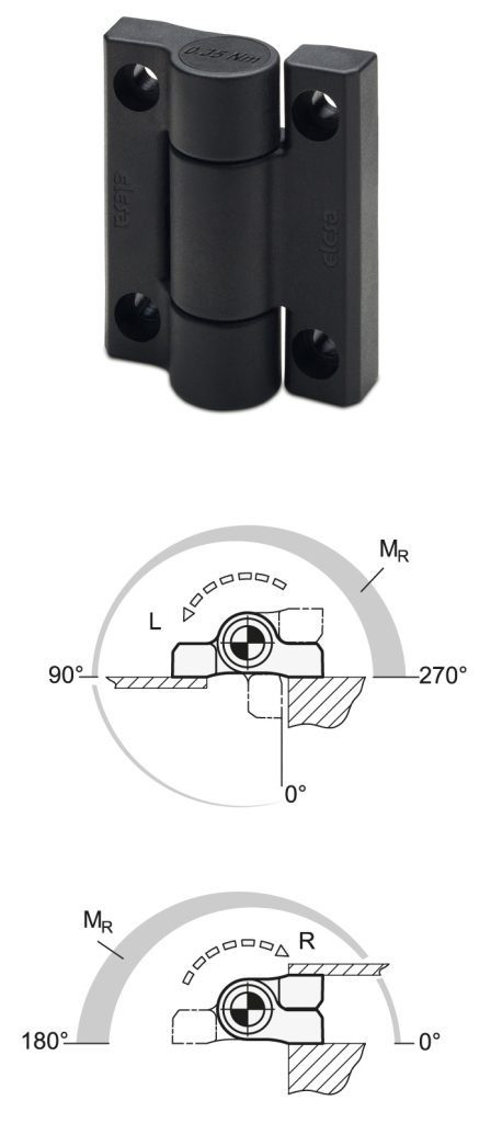 Winco now offers the GN 233.3, a new functional hinge made of plastic. The return function automatically restores the hinge and attached cover or door to the initial position once it is released. The hinge is therefore ideally suitable for automatically opening and closing doors or keeping them closed.
