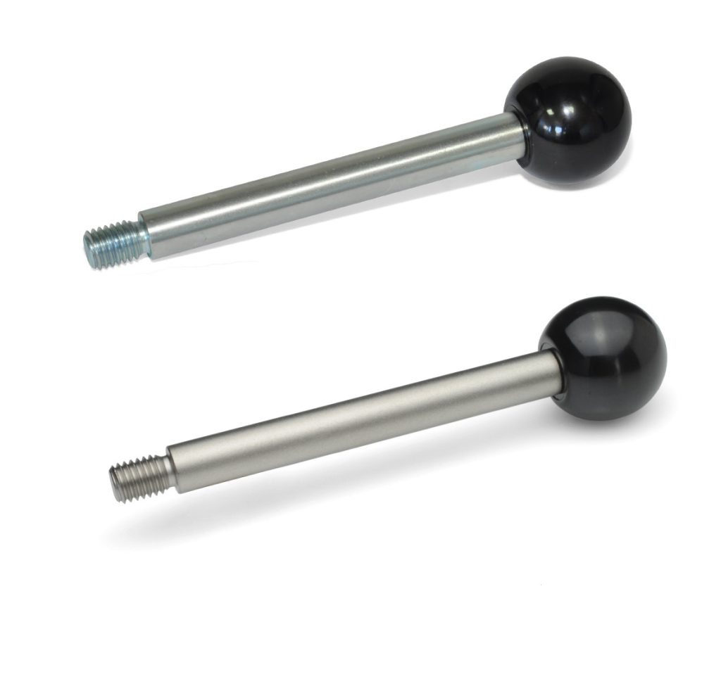 The steel lever option is zinc plated with a blue passivated finish and there is a variety of operating knobs to choose from dependent on their function and/or their design. The stainless steel version has a sandblasted satin finish and is a suitable choice for applications requiring corrosion-free environments. The knobs on both are black Duroplast (Phenolic PF) with a shiny finish and have a maximum heat resistance of 150° C (300° F).
