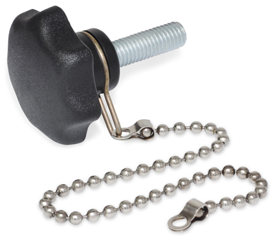 These RoHS-compliant hand knobs can be attached to a base element with the help of a ball chain or a retaining cable. Knobs are supplied ready assembled (with lanyard ring, with lanyard ring and retaining cable, or with lanyard ring and ball chain).