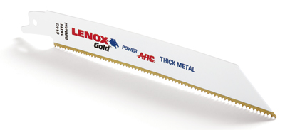 "LENOX Gold Power Arc Curved Blades are designed for the heavy recip user who understands the value of investing in a premium product that will deliver superior cutting performance," said Matt Savarino, Brand Manager for LENOX. "These blades last up to twice as long as standard straight LENOX recip blades, allowing trade professionals to be more productive on the job and to achieve more efficient results."