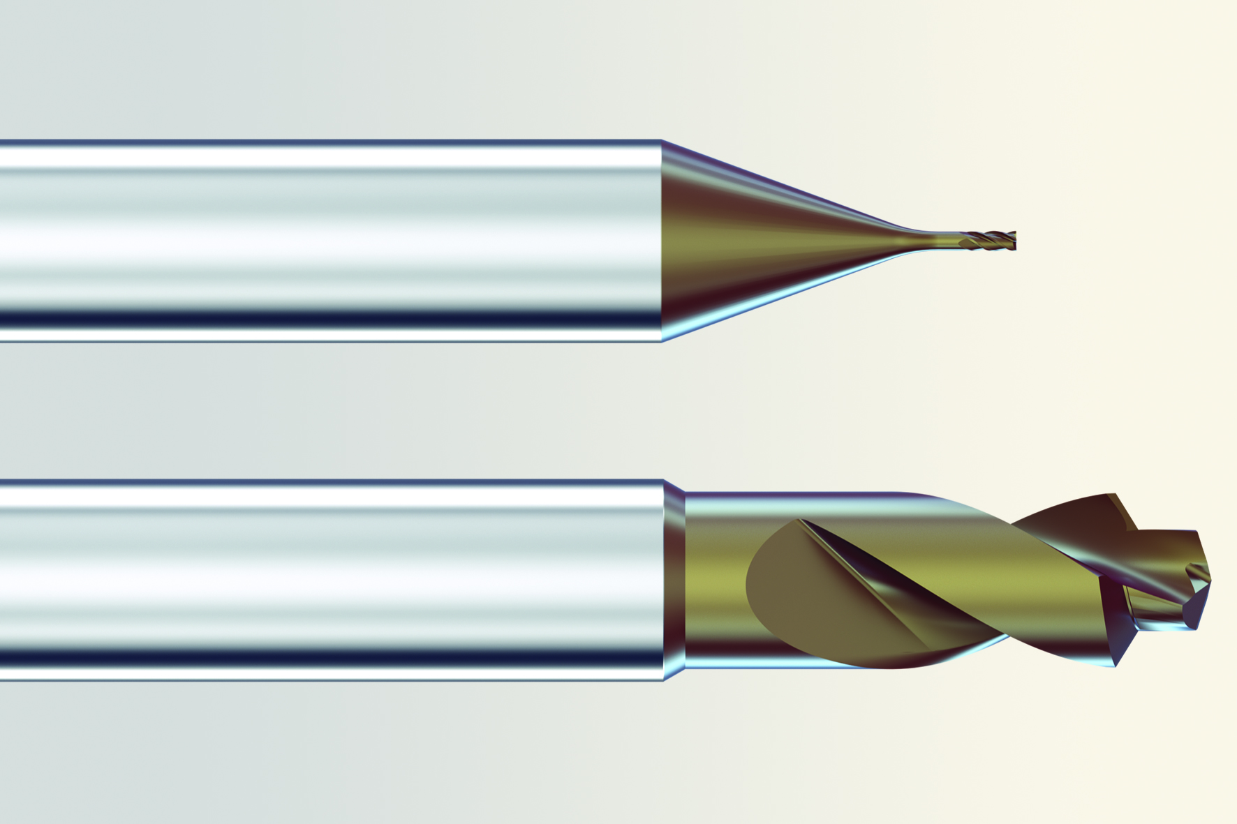 The four operations (pre-hole drilling – chamfering – milling – deburring) need to be completed in three operations with two tools. First a step drill does the center bore and a chamfer of 120 degrees and this right away with an excellent surface quality of Ra 0.2 um, Rz 0.8 um. After the milling of the final shape, this tool will be used once again in the last operation to achieve a nearly burr-free surface and superior surface quality. The milling cutter with 3 or 4 flutes – depending on diameter – is available in two standard lengths, so that depending of the screw type, different Torx shapes can be machined. It's high stiffness allows machining with high feeds and massive stepover, while still guaranteeing the necessary hexalobular profile accuracy. The surface quality is given by the special geometry which also affords to work with high stepover so that the operation can be completed with few steps.