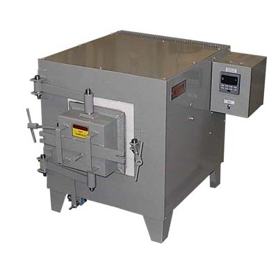 The double pivot horizontal swing door keeps the hot surface away from the operator at all times and is designed with a safety microswitch to shut power to heating elements when the door is opened. The heavy duty hinge and cam latch insure a positive door seal. An automated Honeywell digital time proportioning temperature controller for precision heat treating is mounted on the side wall of the unit. Series 7000 furnaces are ideal for hardening, preheating, annealing, brazing and normalizing.