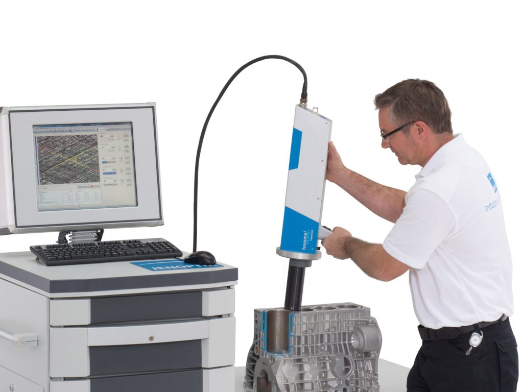 The Hommel-Etamic Toposcan is a system used for measuring the surface of cylinder bores larger then 60mm in diameter. The Toposcan is capable of automatically measuring the size of porosity and blow holes, stroke reversal radius, laser pocket structures, roughness of bore walls, torn and folded metal and cross-hatch angles. It can be used either for R&D tasks or in the production line.