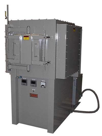 The double pivot horizontal swing door keeps the hotface away from the operator at all times and is specially designed to withstand warping and distortion. A ceramic fiber gasket around the door perimeter and swing bolts with T handles compresses the door against the furnace faceplate. Accessories include an overtemperature safety system with a high limit controller and an inert atmosphere flowmeter.