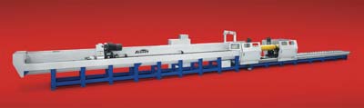 Sunnen Product Co.'s new HTD tube hone delivers a 16m (52') stroke, and handles parts up to 1,000mm (39") in diameter. An electronically controlled, 30-kW (40.23-hp) spindle motor powers stock removal of 2,500 cm3/hr. (150 in3/hr.) for fast, accurate honing of helicopter driveshafts, marine driveshafts, submarine periscopes, downhole oil drilling components, cannon barrels, bimetallic tubes and hydraulic cylinders. The machine corrects bore geometry and size errors, as well as product-specific surface finishes and crosshatch angles to ensure correct sliding/sealing surfaces between mating parts. The HTD uses an operator-friendly Windows-based controller for optimal control of bore geometry with functions for stroke position, motion, stone feed and cutting pressure. The HTD is particularly suited for controlling taper variation and drift in long bores, using Sunnen's double- and triple-banked tools. Available abrasives include aluminum oxide, silicon carbide, CBN and diamond honing stones Six-tube hone models from Sunnen can do light-duty repair and resurfacing work to high-power, high-metal-removal applications on long, large parts. These machines handle bore diameters from 3mm to 1,000mm, with stroke lengths of 2m to 14.5m, providing stock-removal rates of 130 cc/hr. to 2,500cc/hr.