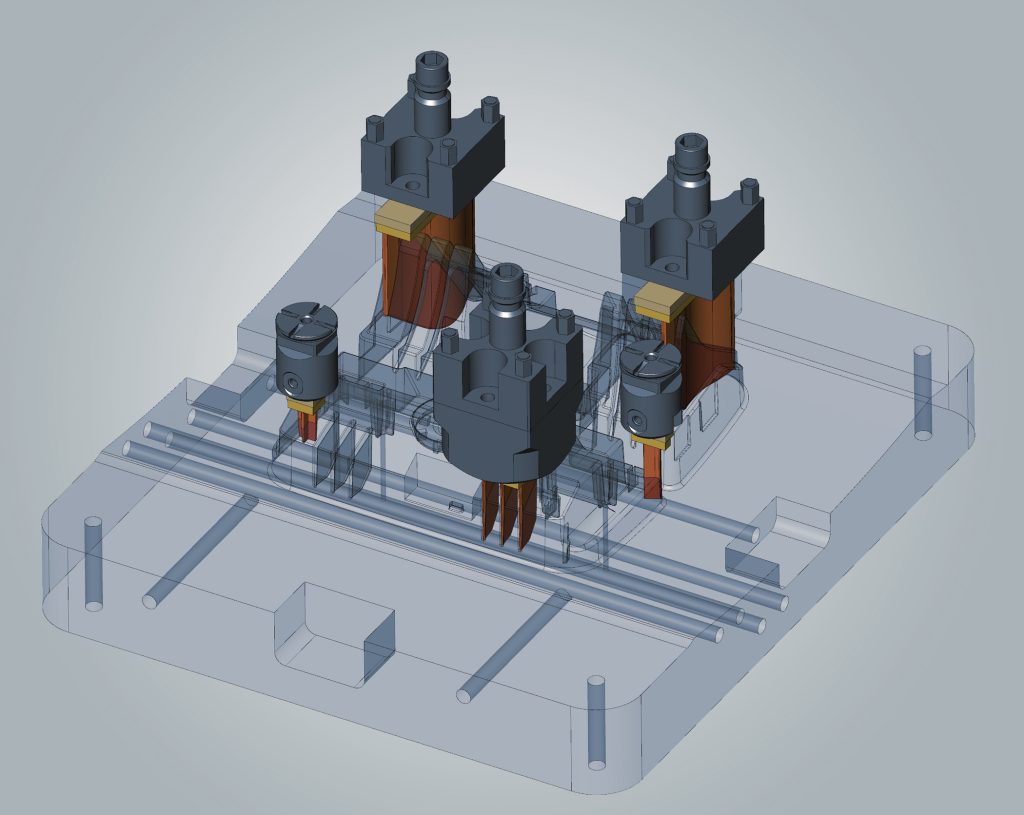Further innovative functions in hyperCAD-S include the positioning of fixturing components, providing the ability to fixture and adjust to match whatever side of the part the user is making. For example, elements such as clamping jaws can be moved linearly or radially to the optimal positioning.