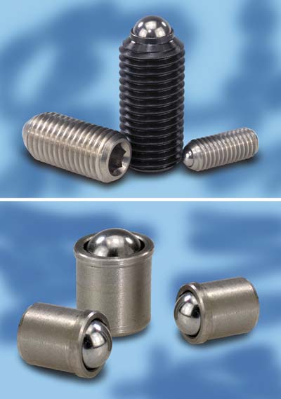 The spring plungers, including both threaded and press fit styles are used to locate, stop, align and hold parts in a variety of applications. They are ideal for use in fixturing applications where pressure is required for accurate positioning; to provide simple "lock and release" actuation; to apply force that helps to disengage or "lift" workpieces from workholding devices for easier removal; and to provide spring tension for bumper-type cushioning of parts.