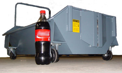 The L44 Cart has a capacity of 6.9 cu. ft., but with an overall height of only 15-½ inches cart fits snugly next to machine tools, under discharge, conveyor belts and tables. Push handle is removable to allow placement in tight spaces. The L44 can be dumped from a fork lift using the optional DF-1044 dumping frame.