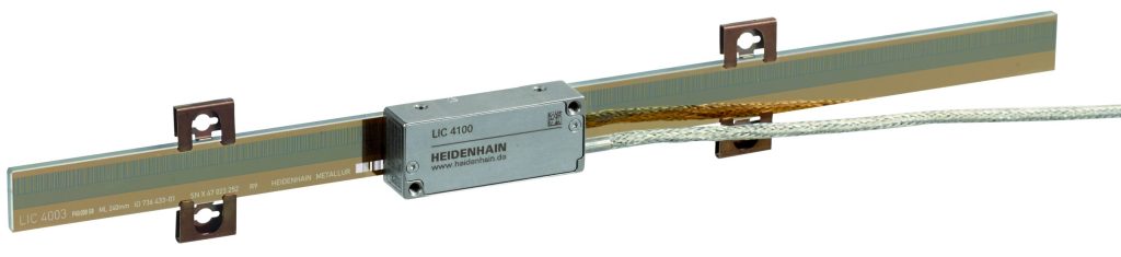 The LIC 4100 V encoder system uses a glass scale that can be of a normal or zero thermal growth material attached to the equipment with a clamping system. The glass scales can be up to 3 meters in length. For longer lengths of up to 27 meters, a stainless steel tape scale can be used with an extrusion that is screwed to the machine axis. Accuracies of the glass scale can be to +/-3 microns, and the longer length tape scales can be to +/-5 microns per meter.