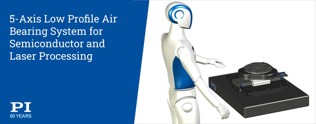 PI introduced a new high performance 5-axis air bearing motion system at the recent SPIE Photonics West event, the world's largest photonics conference, perfectly placed right in the back yard of Silicon Valley. Suited for high end motion and positioning control applications with nanometer precision, such as required in semiconductor front-end/back-end processes (wafer processing operation and assembly process), the low profile multi-axis stage motion system is based on a combination of PI's successful A-311 PIglide planar XY-air bearing stage, the unique low-profile A-532, a 3-axis Z-Tip-Tilt stage, and the A-826, a 6-axis high performance industrial motion controller.