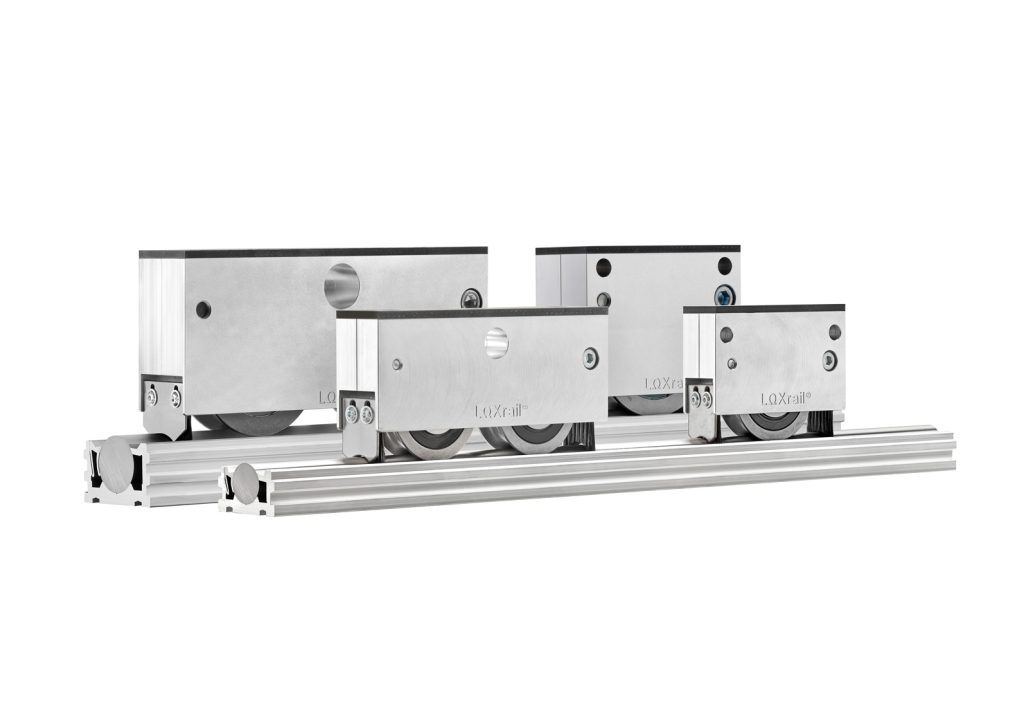 LOXrail is available in two sizes with rail diameters of 25 or 40 mm. Goods loaded on standard or custom-made trolleys are safely transported and accurately positioned. Nominal payloads vary with the number of wheel sets. Even standard trolleys carry payloads of up to 40 tons. In one-piece flow assembly lines, the trolleys serve as mobile workstations. The floor-level rails never get in the way of employees and are no obstacle for rolling racks, working and cleansing machines. The rail products portfolio includes junctions and components to change the direction of the trolley.