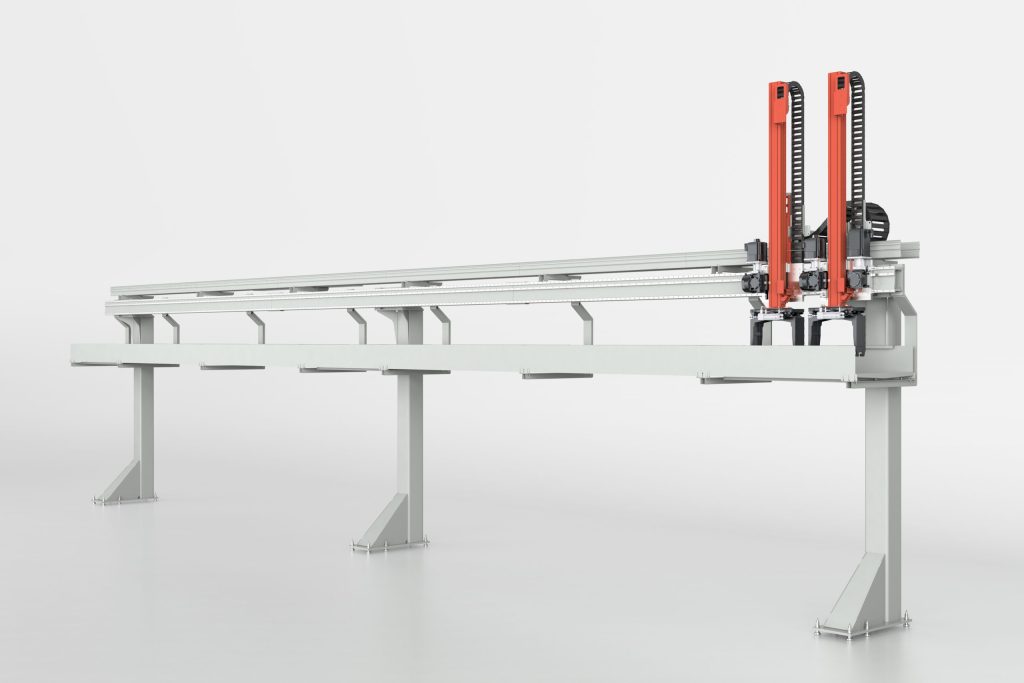 Today, the "inline concept," featuring long travel ways, dominates production lines. Loading gantries handle transportation of workpieces, as well as loading and unloading of machines. Conveyor belt systems for the transportation of workpieces are now only required to a lesser extent. In addition, the number of machines covered by a single loading gantry is increasing, in order to increase production capacity and minimize use of automation systems.