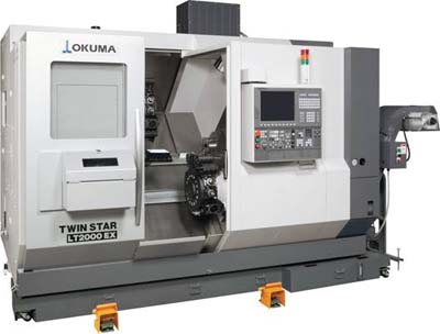 With its left and right spindles and upper and lower turrets, Okuma America Corp. reports that the LT-2000EX-MY horizontal lathe enables complete production on a single machine.