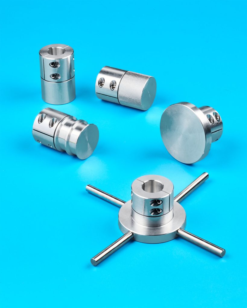 Stafford machinable shaft-end adapters feature the Accu-Clamp design with an integral clamp on one side while leaving the other side fully custom-izable by the user. Available with or without a flange, these parts can be modified by the user or by Stafford and are offered with a plain bore or keyway for greater torsional holding power and fixed shaft phasing.