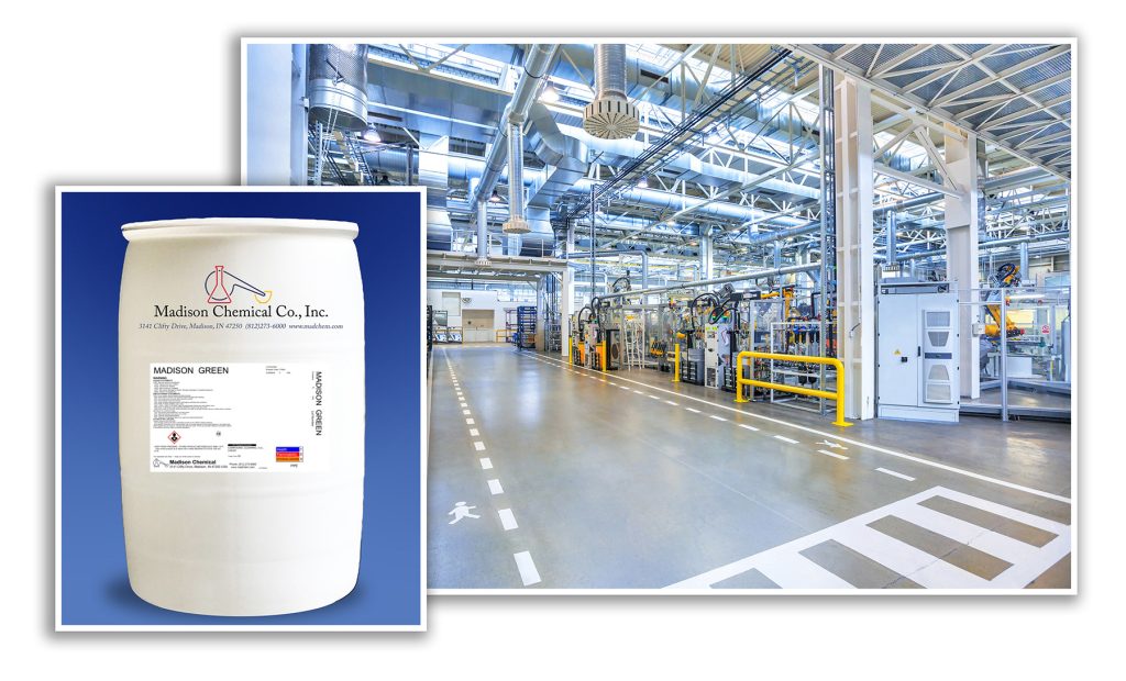 Madison Chemical introduces Madison Green, a mildly alkaline, environmentally friendly, biodegradable general-purpose cleaner that is highly effective on greasy and waxy surfaces, such as floors, work benches and other equipment. This free-rinsing product does not leave a white alkaline film on the cleaned surface and has a pleasant wintergreen odor.