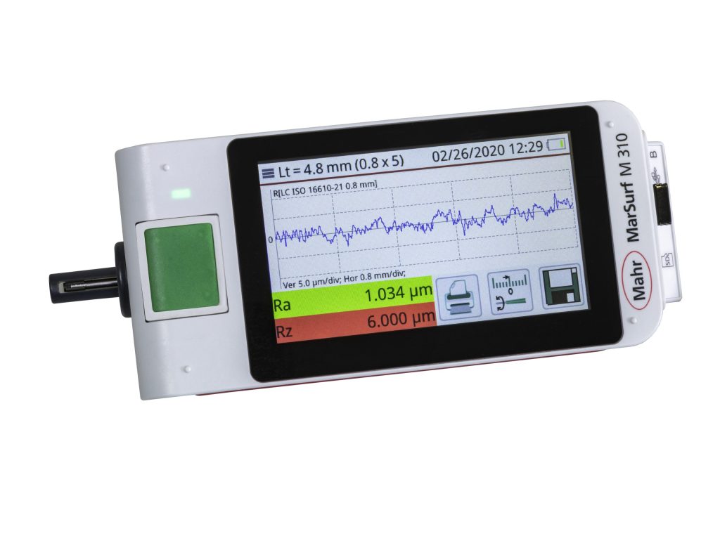 MarSurf M 310 software features 31 parameters to choose from, offering performance range on par with a laboratory instrument. Tolerance limits can be set for all selected parameters, and exceedances are signaled in the display and in the protocol. Measurements are made according to the standards and rules for stylus instruments (DIN ISO, ASME, JIS, MOTIF), and can be quickly and easily saved in the device. Free MarWin Roughness Viewer software for Windows is also available, which allows the measurements to be brought over to a PC for archival or use in quality documentation reports.