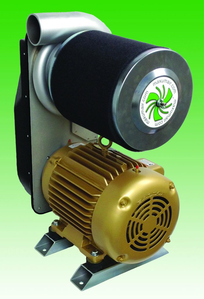 Maxum says its Maxumizer Air Blower systems feature durable, long lasting, science-based designs that use less energy than conventional systems and are optimized for powerful blow-off and parts drying. This permits them to provide higher output with less energy in the bes- performance range for surface blow-off and drying applications. In most cases this design will use 30 to 50 percent less horsepower while running at much slower speeds.