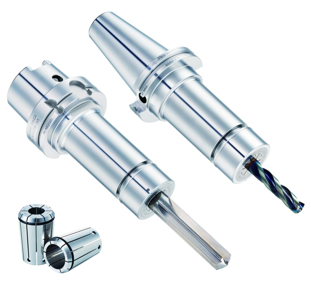 BIG KAISER's Mega New Baby Chuck is now available up to 1"-dia. clamping for drills, reamers and finishing endmills with 0.00004" runout accuracy. The Mega New Baby Chuck is a high precision and multiple-purpose collet chuck system. It is designed for high-speed cutting and guarantees a 1 micron runout at the collet nose.