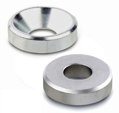 These washers are used mainly in mechanical machine and jig construction when DIN 125, DIN 9021 and DIN 6340 washers do not meet the requirements of the application. GN 6341 washers are offered in two versions of turned steel: blackened finish, or zinc plated and blue passivated. GN 6341-NI washers are stainless steel with a matte shot-blast finish.