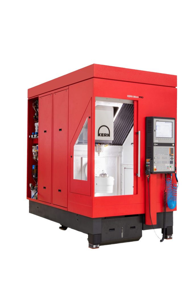 In today's machining world standard parts are no longer a business. Only with highly specialized applications shops continue to grow. KERN Precision Inc. introduces a new 5-axis toolchanger. See automatic toolchanger." title="CNC machine tool capable of drilling, reaming, tapping, milling and boring. Normally comes with an automatic toolchanger. See automatic toolchanger." aria-label="Glossary: machining center">machining center. Based on the KERN Micro, the new KERN Micro Pro has been adjusted and equipped to fit perfectly well into shops and provide shops with the opportunity to manufacture highly specialized parts.