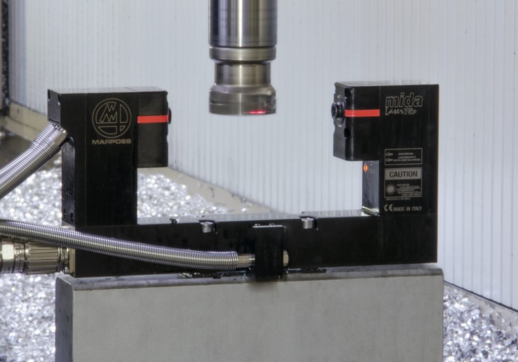The incorporated Mida A90 touch probe is available with three to five tool contact surfaces and one or more LEDs to visually detect the electrical contact between the tool and the probe.