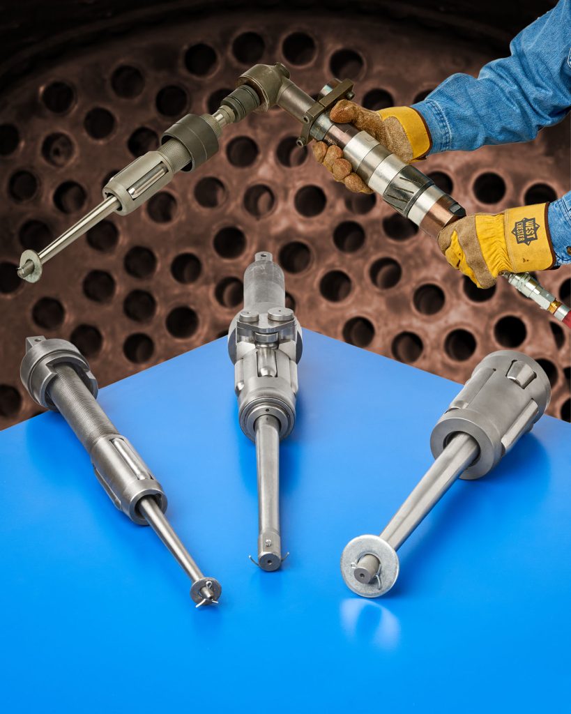 A full line of pneumatic rolling motors and tube expanders for straight-, flare-, long-reach and beaded rolls that prevent over and under expansion are available for sale or rent from Esco Tool.