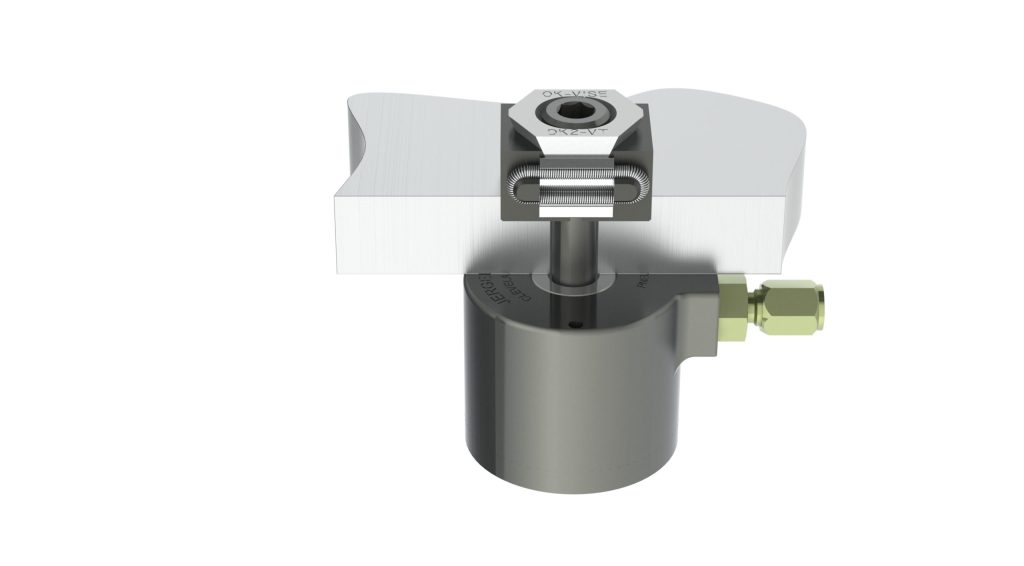 Hydraulic actuation kits pair the OK Vise clamping system with the advantages of hydraulic workholding. Repeatable clamping forces and improved ergonomics are two key benefits for high-production applications. OK Vise clamps are small in size yet provide excellent clamping force, up to 150 kN.