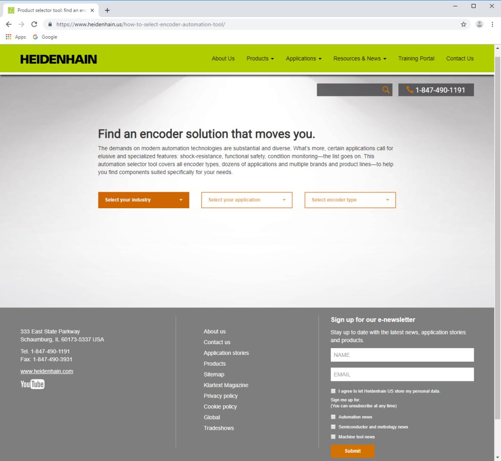 As part of its ongoing "Customer First" initiative, Heidenhain introduces the multiple-level online Encoder Selection Tool for automation. This new Encoder Selection Tool considers various industries and applications, and then suggests the brands with suitable options.
