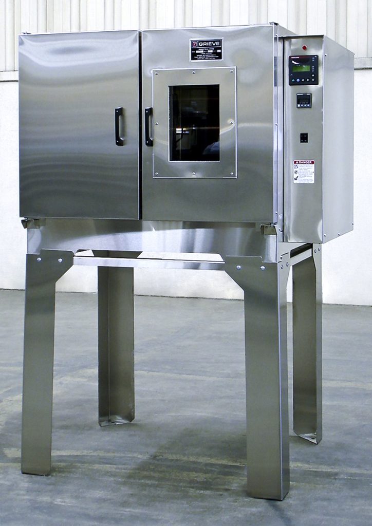 This Grieve bench oven features 5" insulated walls, stainless steel exterior with #4 brushed finish, Type 304, 3B finish stainless steel interior, integral oven stand and an 8" x 10" double-pane Pyrex/Vycor viewing window.