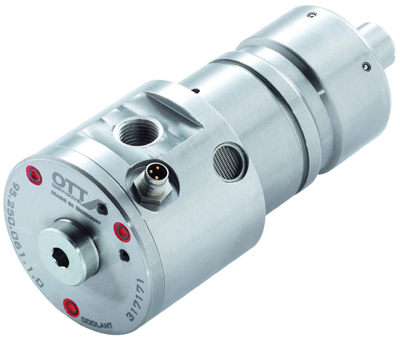 Designed like the Ott-Jakob type GD rotary union with permanently sealed surfaces, this newly developed rotary union from Advanced Machine & Engineering Co. also offers an integrated sensor that monitors leakage.